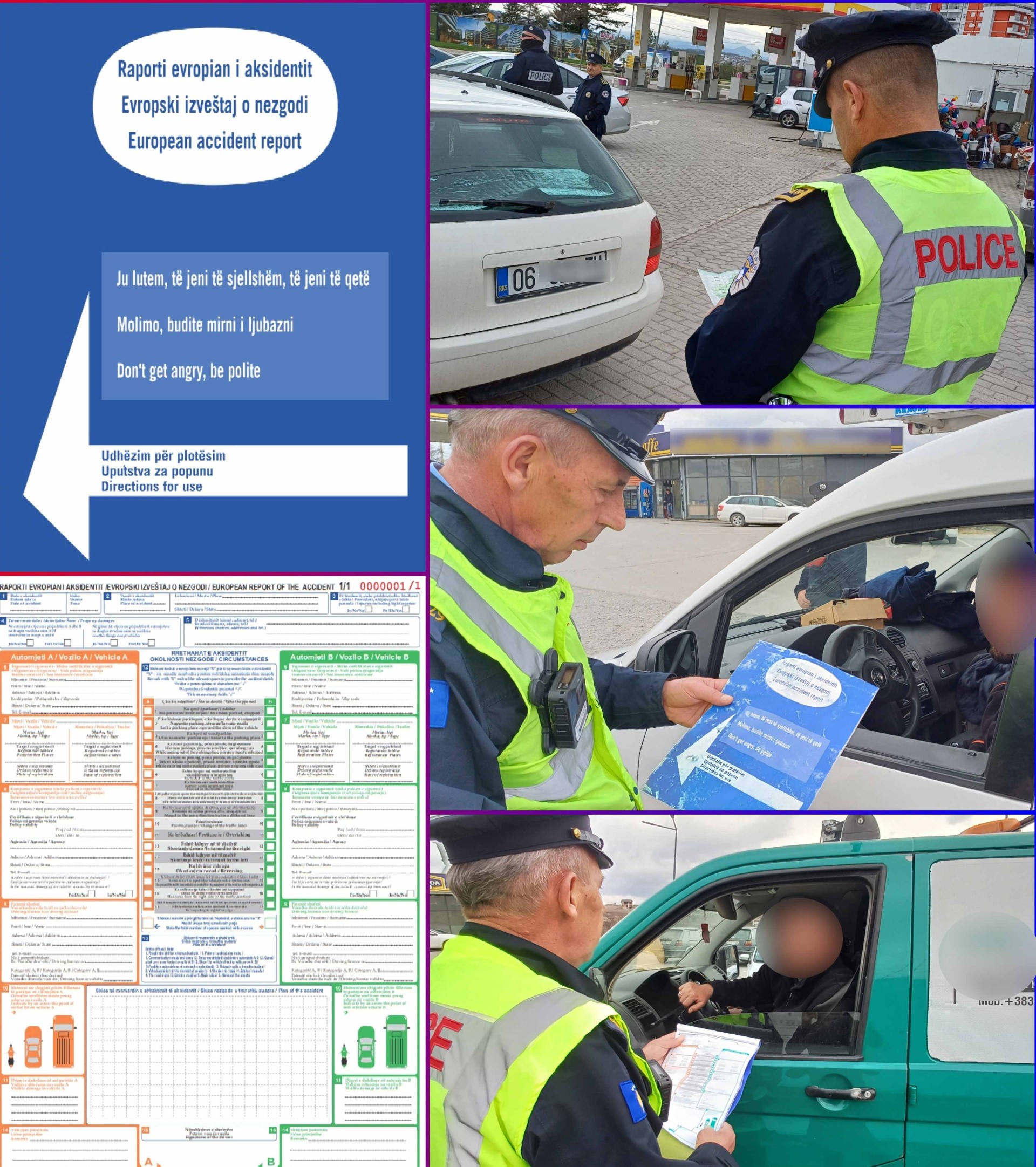 Në rast të aksidenteve me dëme të vogla materiale, kur palët pajtohen për rrethanat e ngjarjes, ata janë të obliguar ta plotësojnë dhe nënshkruajnë Raportin Evropian të Aksidenteve, sipas nenit 211 të Ligjit për Rregullat në Trafikun Rrugor.