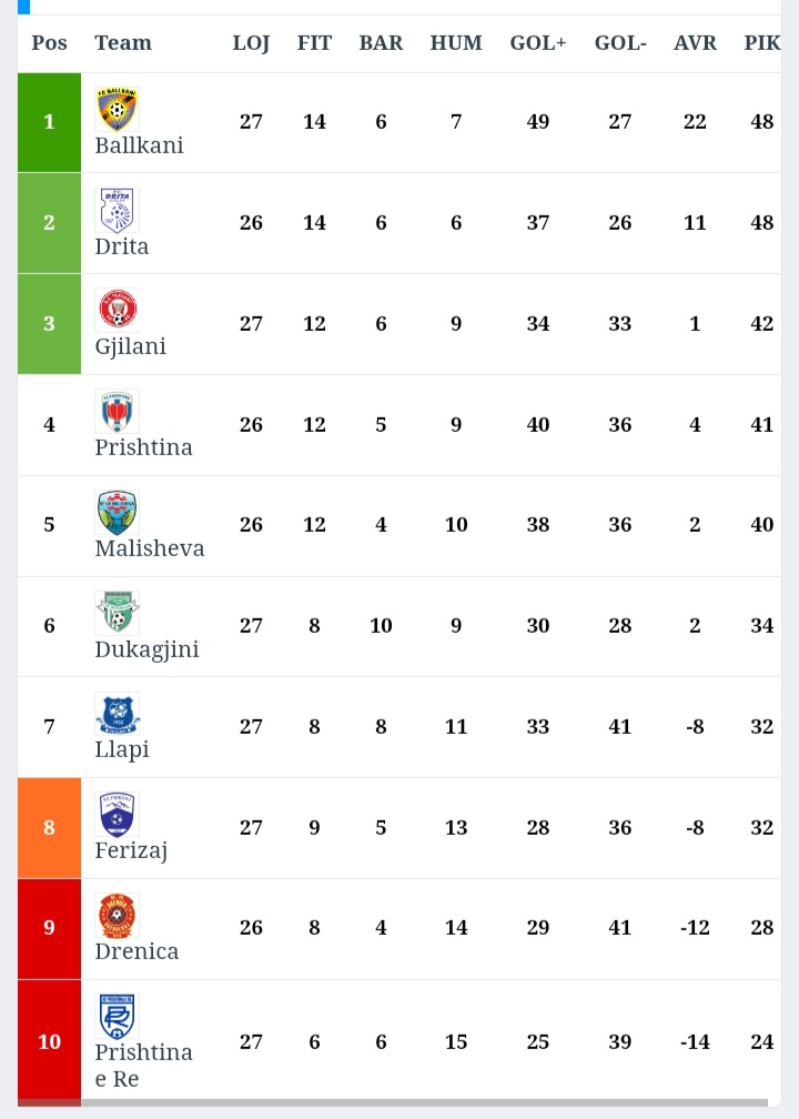 Para ndeshjeve të sotme në Superligë ka këtë pamje