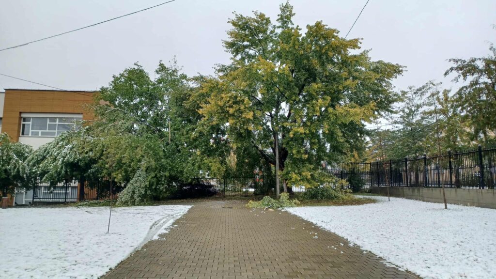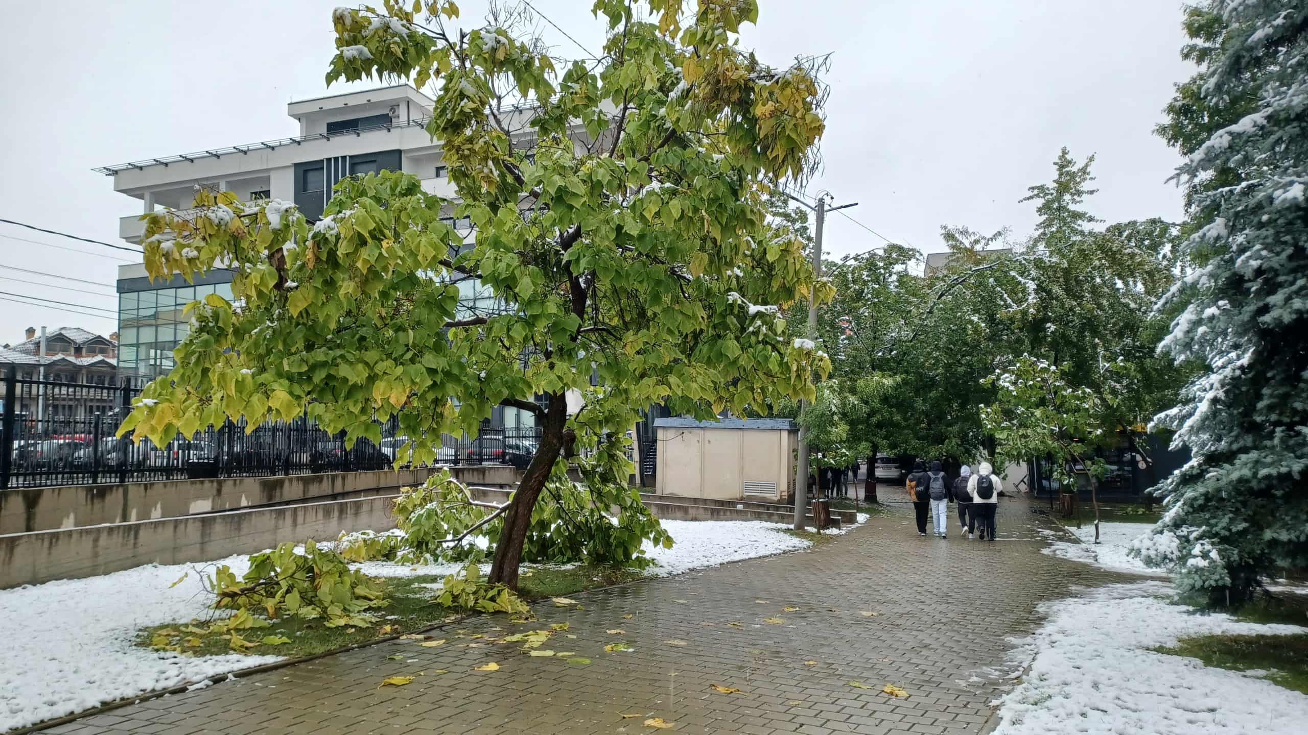 Që nga nata e mbrëmshme, fjollat e borës nuk kanë pushuar, duke mbuluar pullaze e tokën, derisa shumë drunjë e pemë, të cilët ende janë të mbuluar me gjethe të gjelbër nuk kanë mundur t’i përballojnë peshës së madhe të borës dhe janë thyer, duke rënë për tokë.