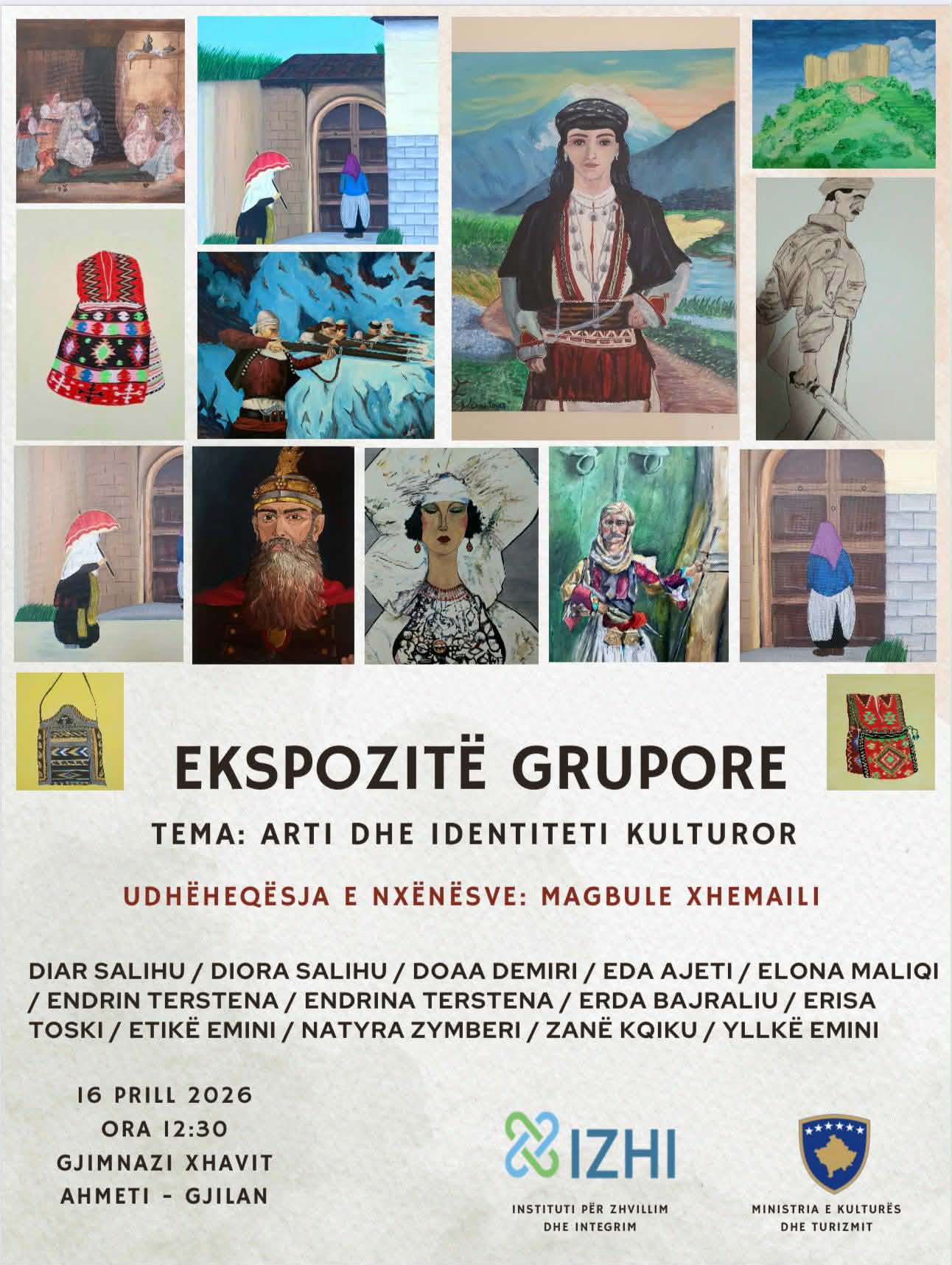 Instituti për Zhvillim dhe Integrim (IZHI), me kënaqësi fton përfaqësuesit e mediave dhe publikun e gjerë të marrin pjesë në hapjen e ekspozitës grupore të nxënësve me temë “Arti dhe Identiteti Kulturor”. Kjo ekspozitë vjen si rezultat i një rrugëtimi intensiv edukativ dhe artistik. Pas një sërë aktivitetesh trajnuese me të rinjtë, organizimit të kolonisë së pikturës dhe një angazhimi të palodhshëm të nxënësve të Gjimnazit “Xhavit Ahmeti”, ky projekt po kurorëzohet me prezantimin e punimeve që reflektojnë vizionin e gjeneratës së re mbi trashëgiminë dhe kulturën.