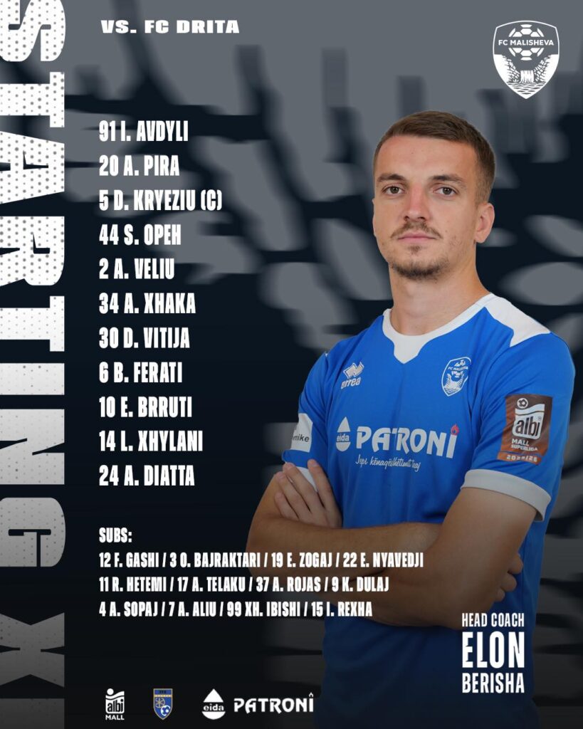 Drita paraqitet me këta lojtarë ndaj Malishevës