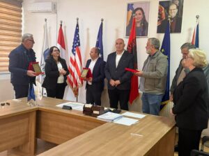 Gjilan, 16 prill 2020 – Kryetari i Gjilanit, Lutfi Haziri dhe ministrja e Administrimit të Pushtetit Lokal, Emilja Redzepi, kane nënshkruar marrëveshjen tripalëshe (MAPL – Komunë – SDC-DEMOS) për bashkëfinancim të projektit kapital nga granti i performancës komunale 2020.