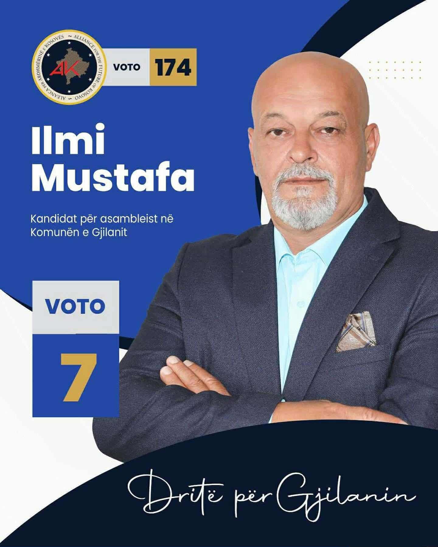 Sot, këtë përvojë dhe përkushtim ai dëshiron ta vë në shërbim të qytetit të tij. Si kandidat për Asamblenë Komunale të Gjilanit me numrin 7 nën siglën e Aleancës për Ardhmërinë e Kosovës, Ilmi Mustafa vjen me një vizion të qartë, të sjellë zhvillim, dinjitet dhe mirëqenie për çdo qytetar.