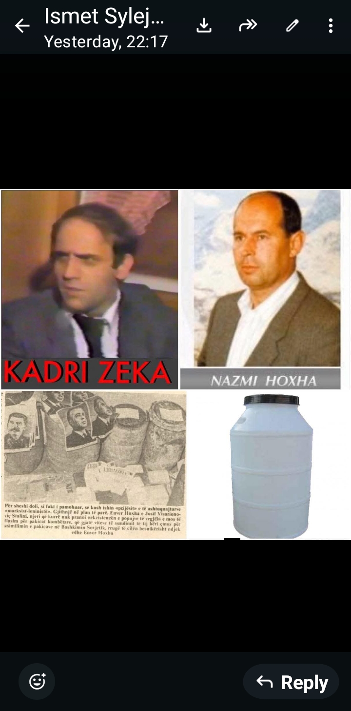 Nazmi Hoxha gjatë bisedave më ka treguar se Kadri Zeka për shkaqe të thella sigurie, bidonin/kanten plastike e ka marrë në fshehtësi të plotë në shtëpinë e tij në Gjilan, të ciles ia ka hequr djathin dhe e ka marrë dhe e ka derguar në destinimin e caktuar nga grupi!