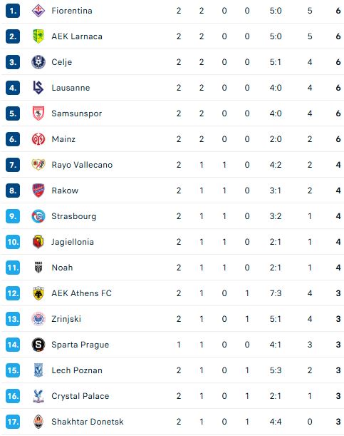 Futboll Kjo është tabela në Conference League, Drita në zonën e kualifikimit 23/10/202523/10/2025 Kryelajmi