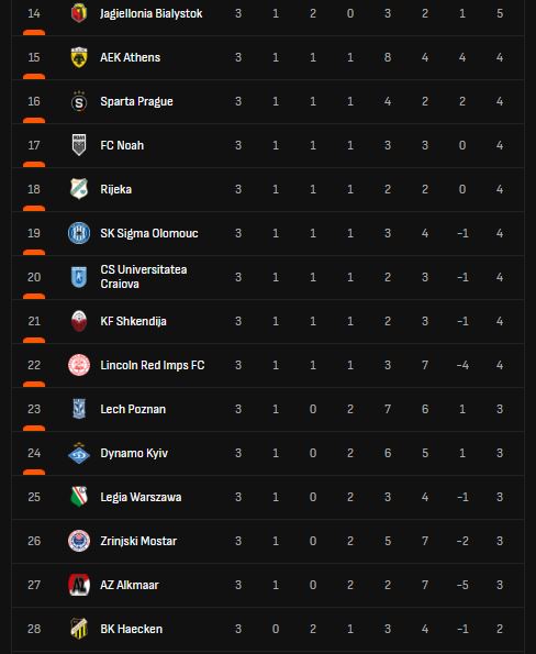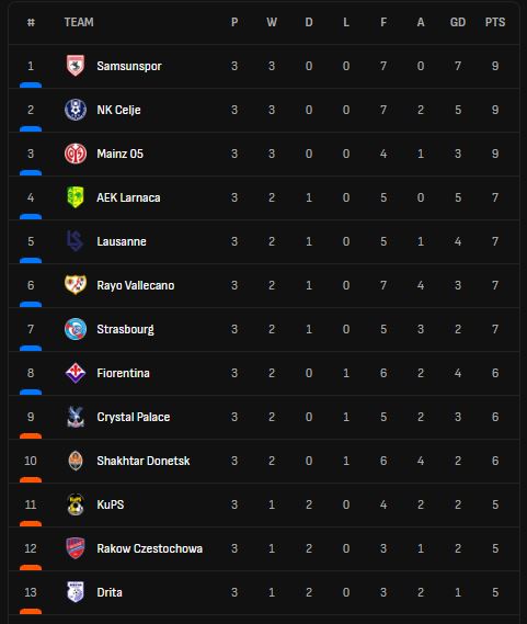 Kjo është tabela në Europa Conference League