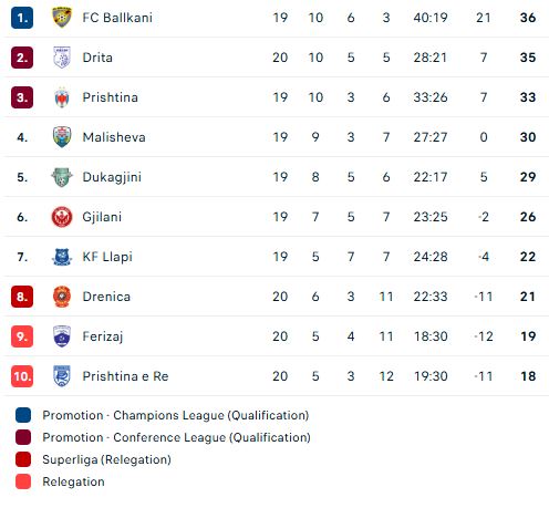 Kjo është tabela në Superligën e Kosovës në futboll
