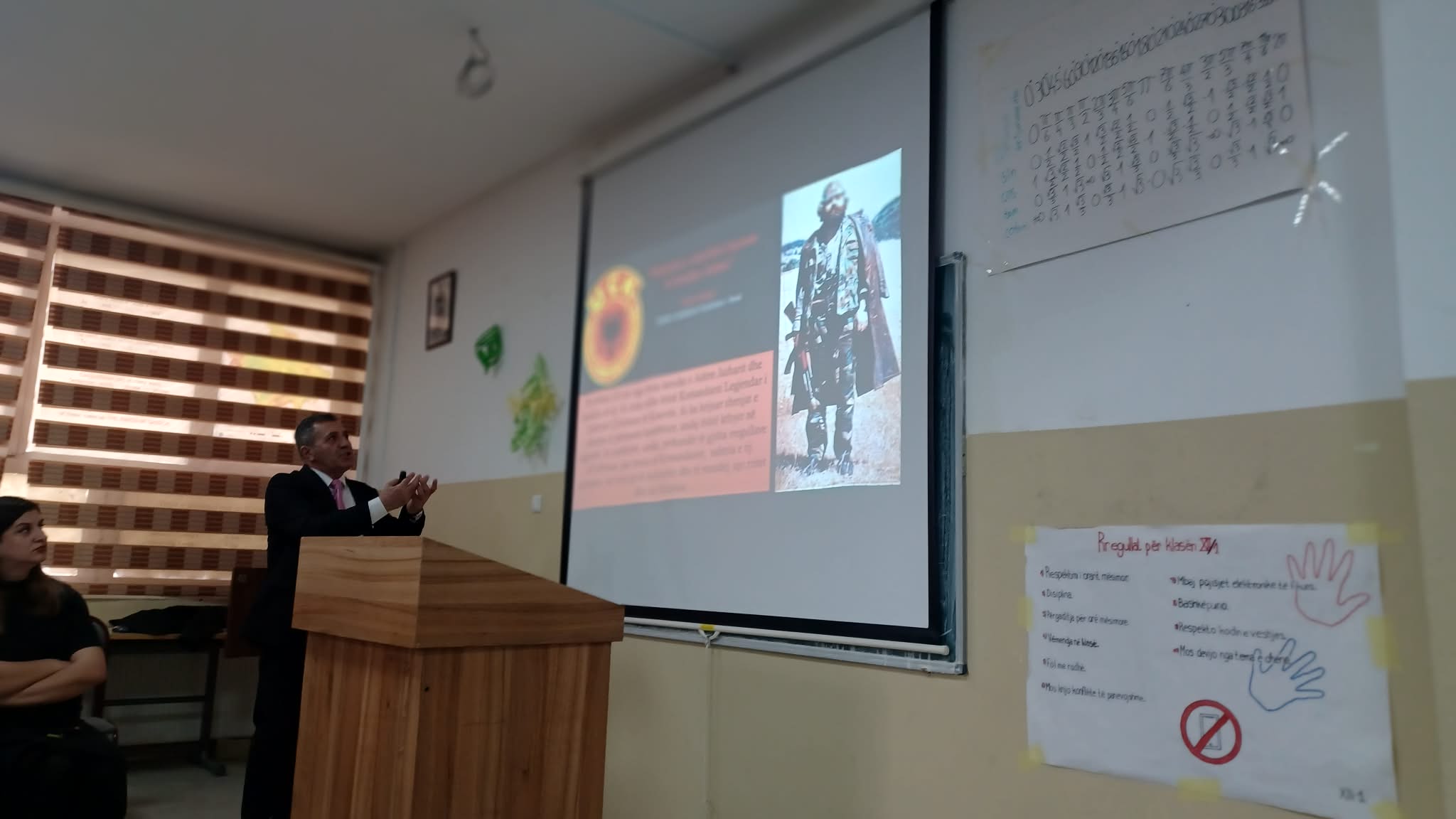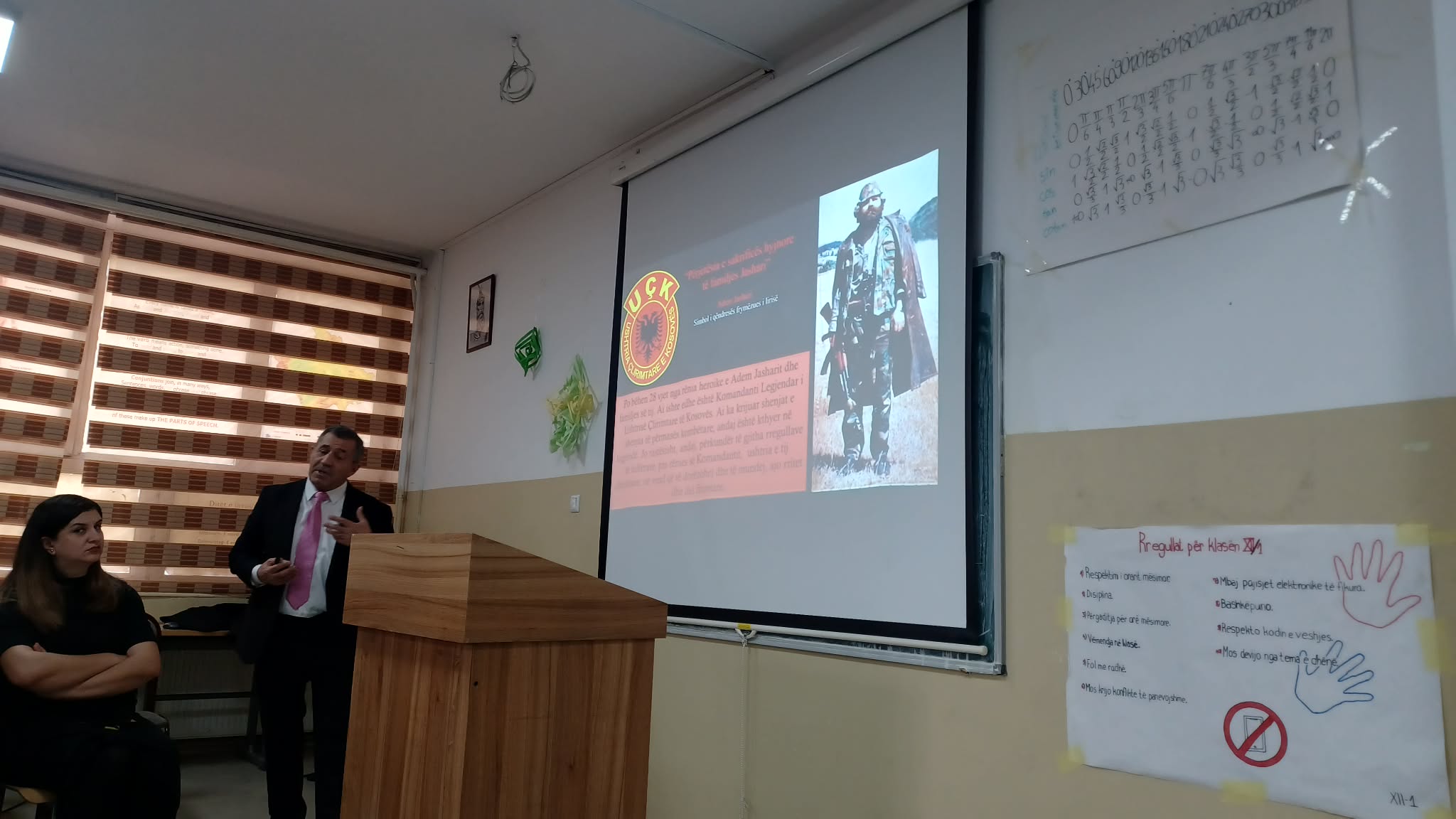Krye protagonisti i kësaj ngjarje, Nusret Pllana, para nxënësve, mësimdhënësve dhe udhëheqjes së shkollës është paraqitur me një ligjëratë për komandantin legjendar Adem Jashari me titull “Adem Jashari simbol i qëndresës – frymëzim i lirisë”. Pllana tha se familja Jashari është sui generis në historinë botërore, ngase askund dhe asnjëherë në botë nuk ka ndodhur që një familje e tërë nga më plaku e deri te më i riu, të luftojnë me një armatë të tërë dhe ku 59 veta dhanë jetën për liri në mesin e tyre edhe 15 fëmijë, që ranë duke luftuar e qëndruar. Ky është një shembull i paparë ndonjëherë dhe se si askund në botë, në Kosovë, kur ra komandanti, numri i djemve dhe vajzave që rrokën armët për liri dhe që iu bashkëngjitën UÇK-së u shumëfishua.