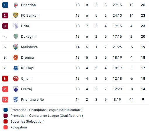 Para ndeshjeve të sotme në Superligë ka këtë pamje