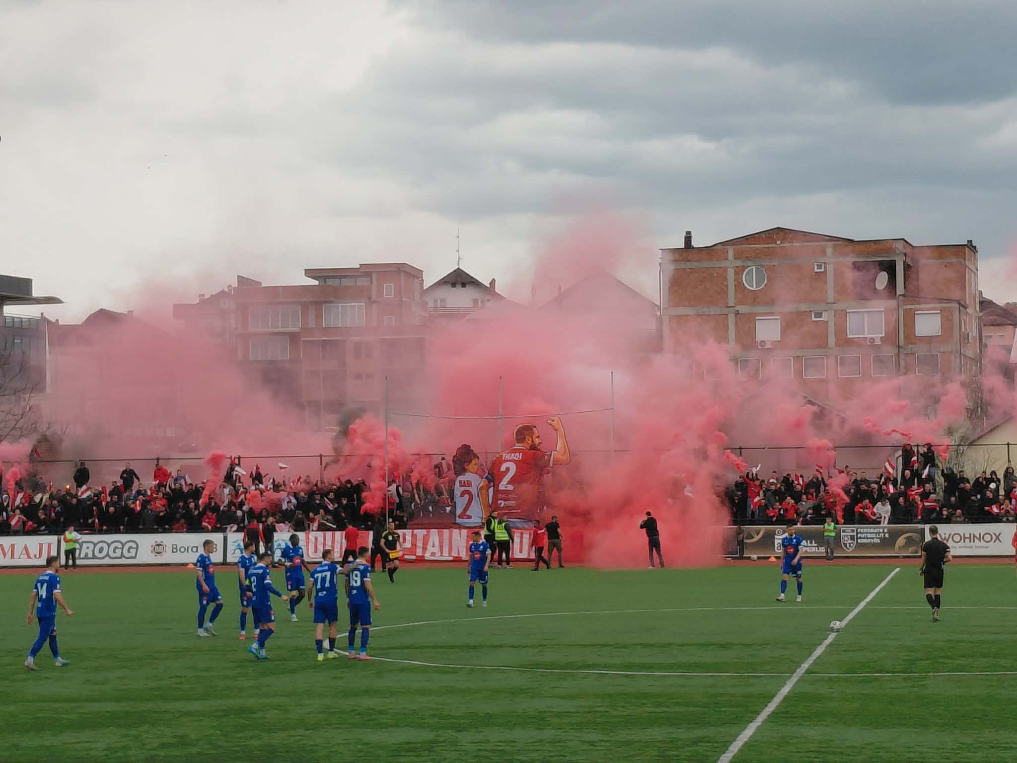 Krejt në fund të pjesës së parë Drita ka shënuar nëpërmjet Tushës me kokë, derisa një minutë më pas, pas një ndërhyrje të ashpër Prapashtica është ndëshkuar direkt me të kuq