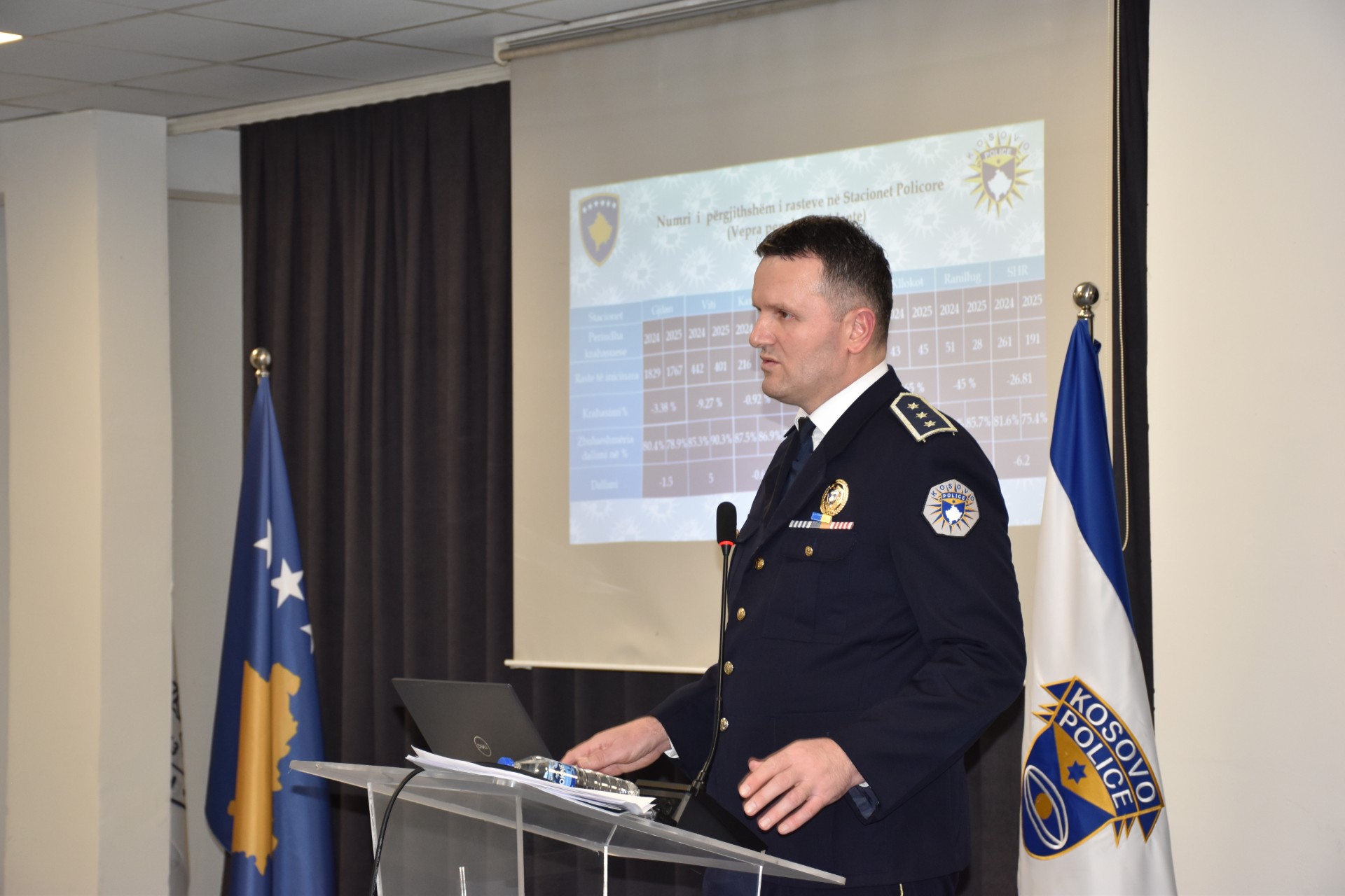 Gjatë prezantimit u theksua se viti 2025 ka shënuar rezultate pozitive në fushën e sigurisë, ku statistikat tregojnë një rënie të numrit të përgjithshëm të rasteve për -4.17%, ndërsa veprat penale kanë shënuar rënie për -10.8%, përfshirë edhe rënie të numrit të veprave penale më serioze.