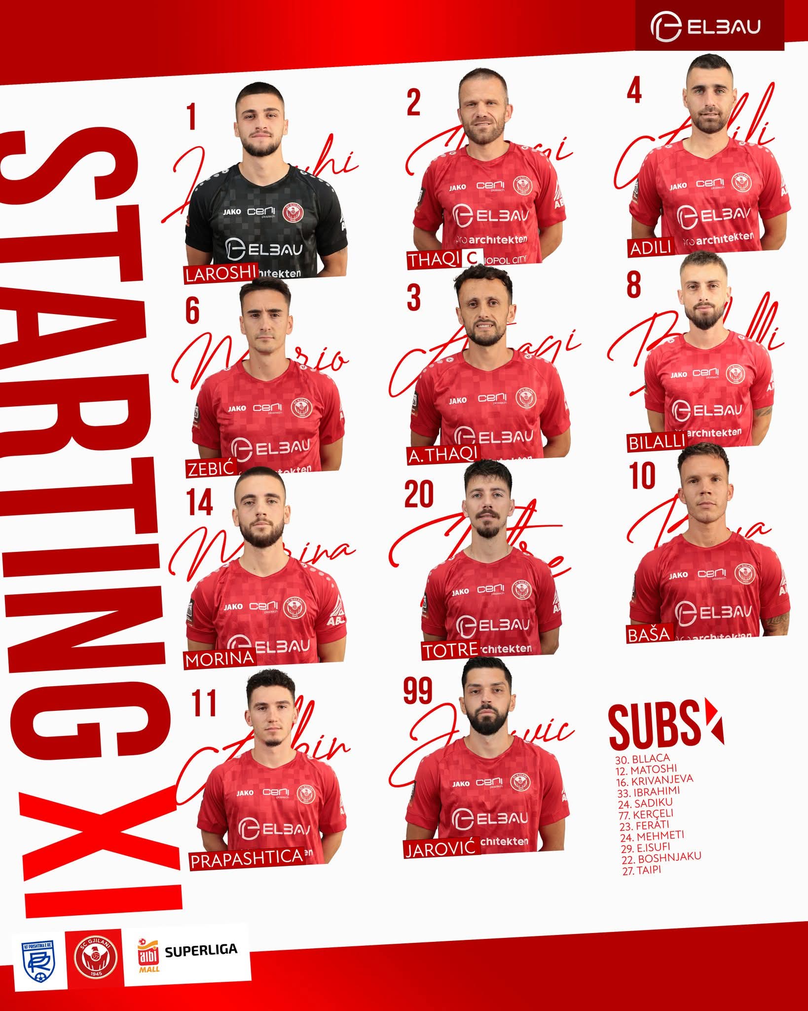 Prishtina e Re: Morales, Zeqiri, Hana, Prençi, Hasanaj, Rudovic, Gubam, Ahmeti, Behrami, Fazliu, Eze