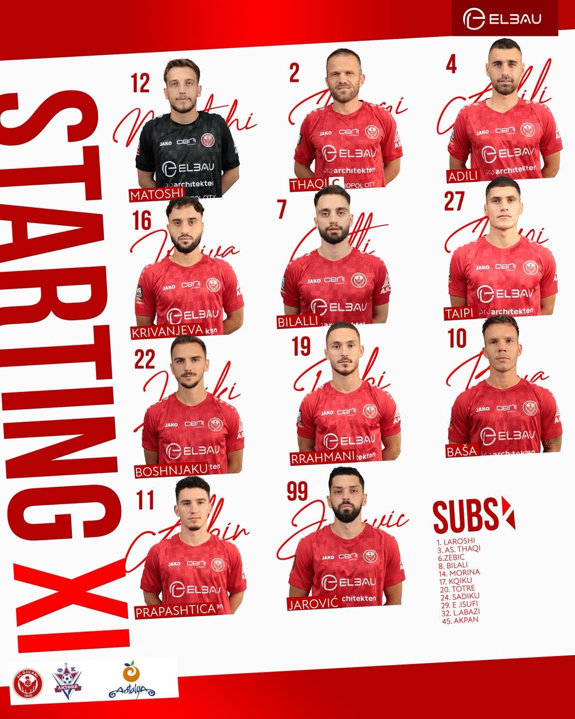 SC Gjilani ndaj FC Aktobe luan me këta lojtarë