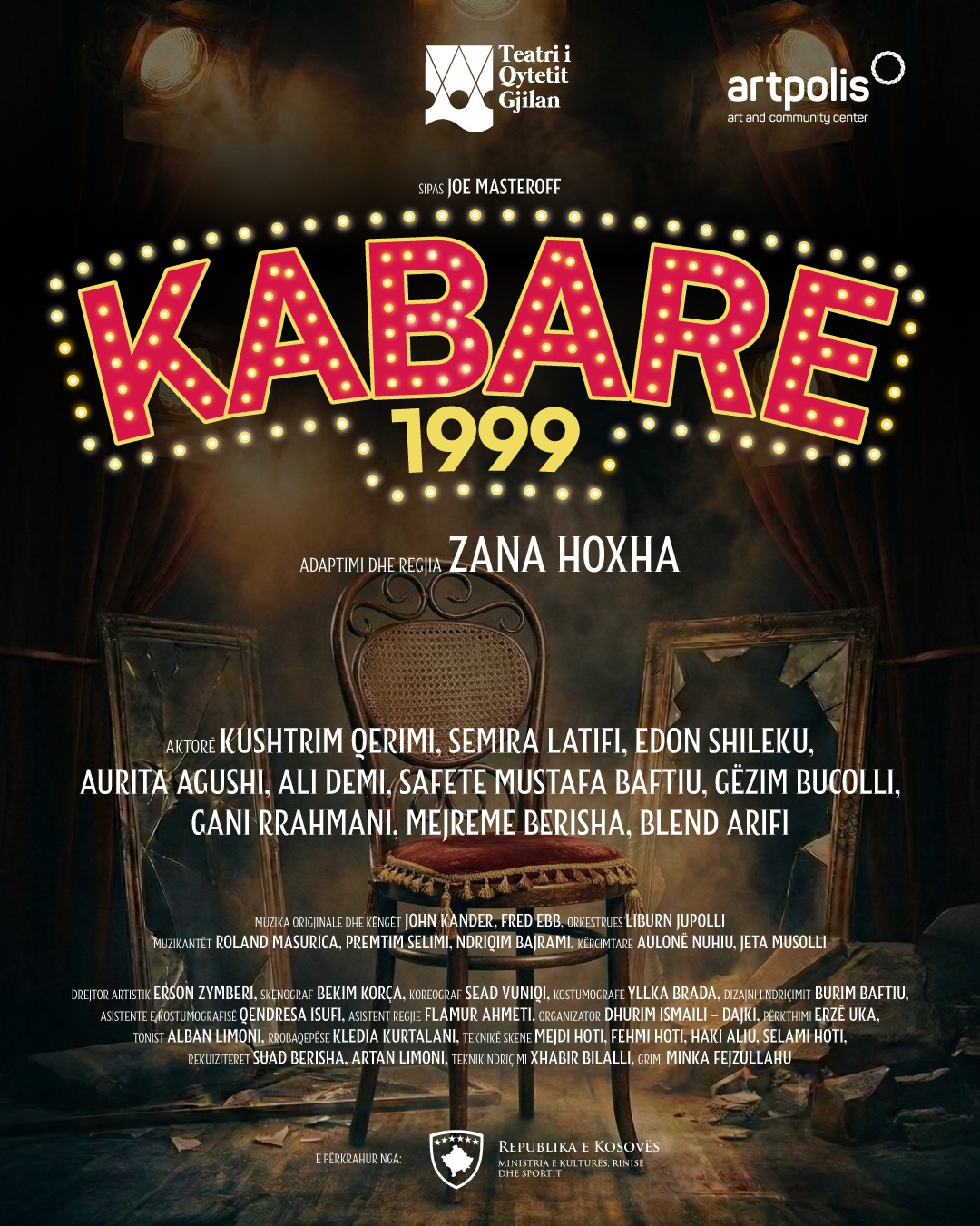 “Kabare 1999” është bashkëprodhim i Teatrit të Qytetit Gjilan dhe ARTPOLIS – Qendra për Art dhe Komunitet i përkrahur nga Ministria e Kulturës, Rinisë dhe Sportit dhe Komuna e Gjilanit
