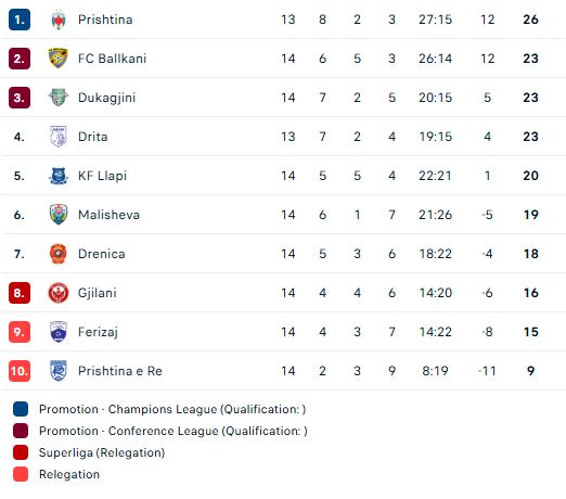 Para ndeshjeve të sotme në Superligë ka këtë pamje