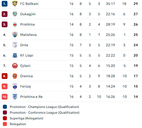 Para ndeshjeve të sotme në Superligë ka këtë pamje