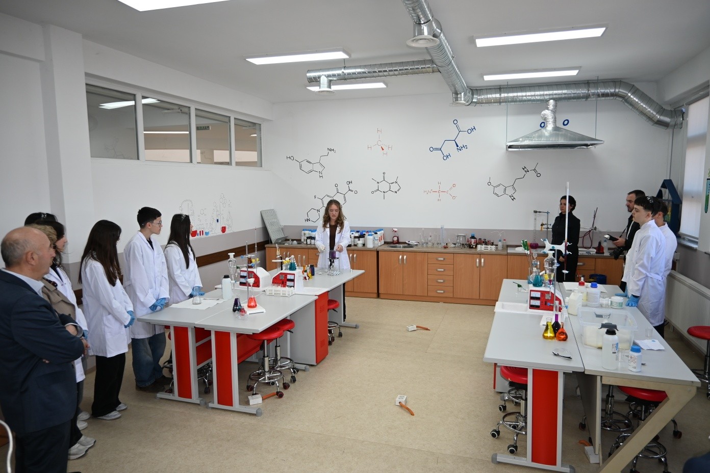Gjatë kësaj vizite u prezantua edhe laboratori i kimisë, i cili së fundmi është furnizuar me mjete të konkretizimit në vlerë prej rreth 4 mijë euro, falë mbështetjes së Korpusit të Paqes. Përveç kësaj, investime në këtë kabinet ka bërë edhe Komuna e Vitisë, duke përmirësuar kushtet për zhvillimin e mësimit praktik.